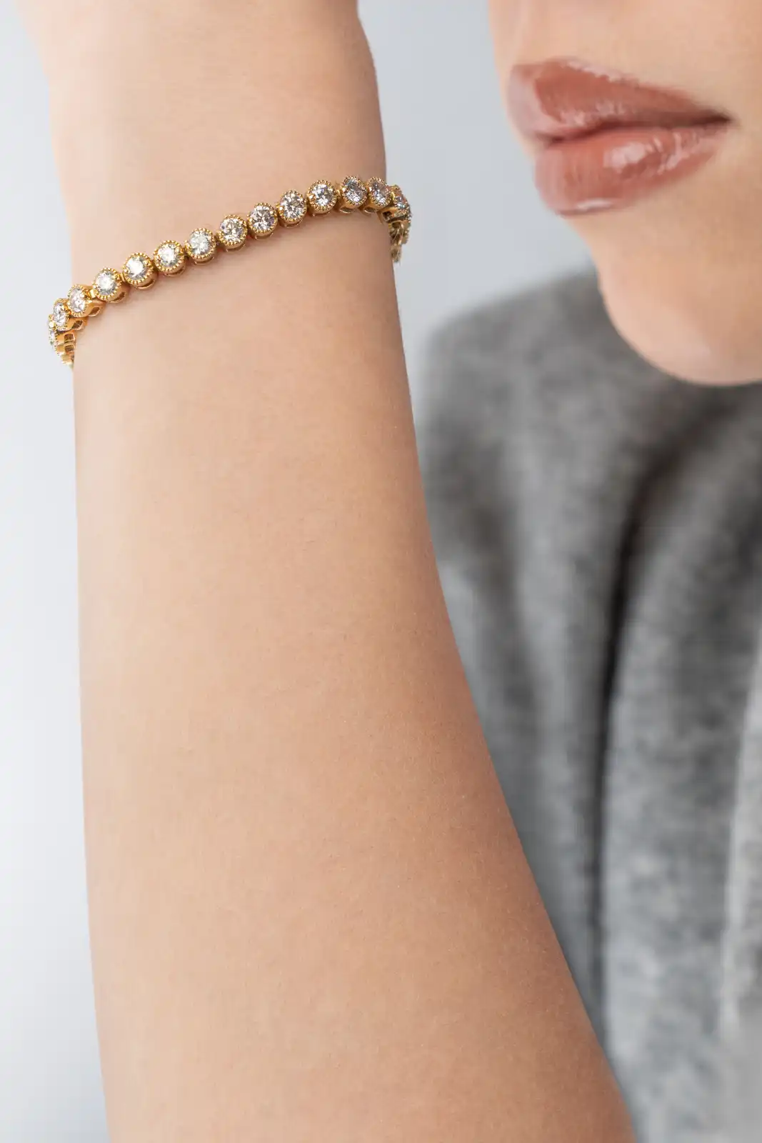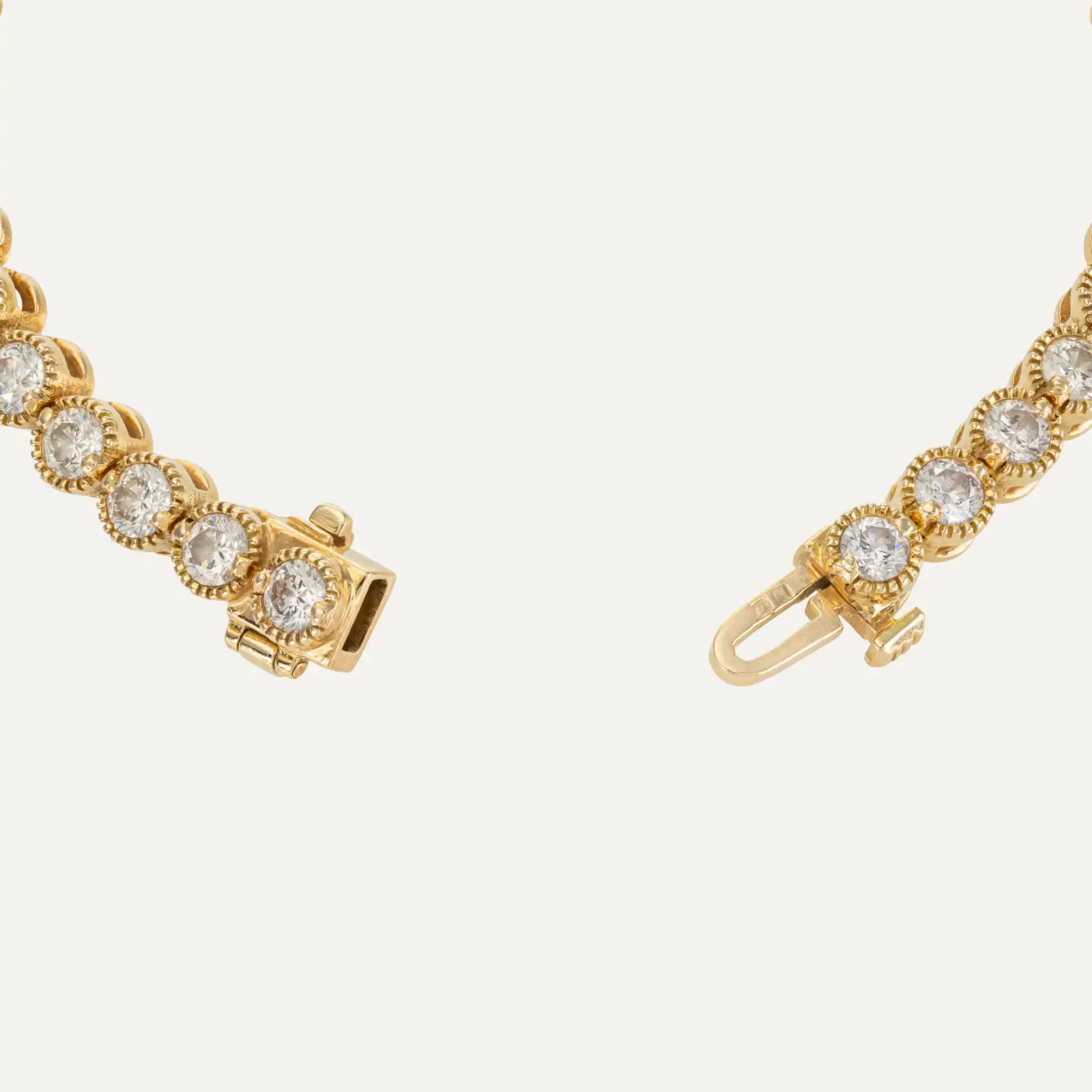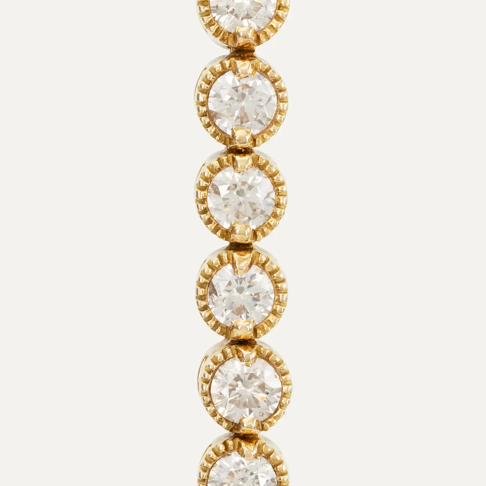 An icon of timeless elegance. This 18 kt yellow gold Riviera bracelet is composed of a harmonious sequence of 36 diamonds, totalling approximately 6 ct, carefully set to create a continuous and dazzling brilliance along the entire piece. It has a striking presence, while maintaining refined sophistication.