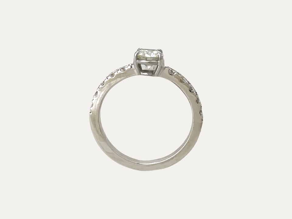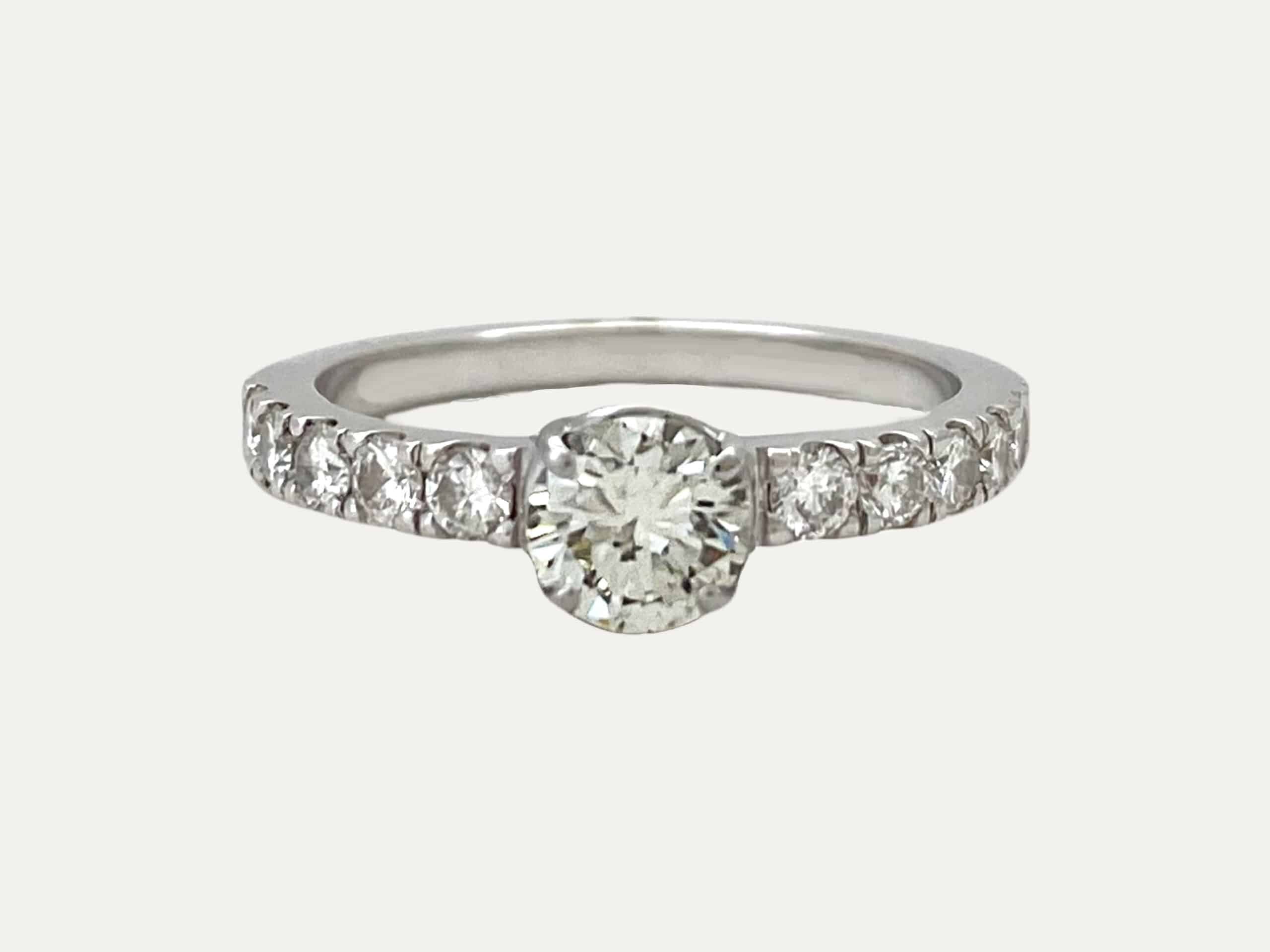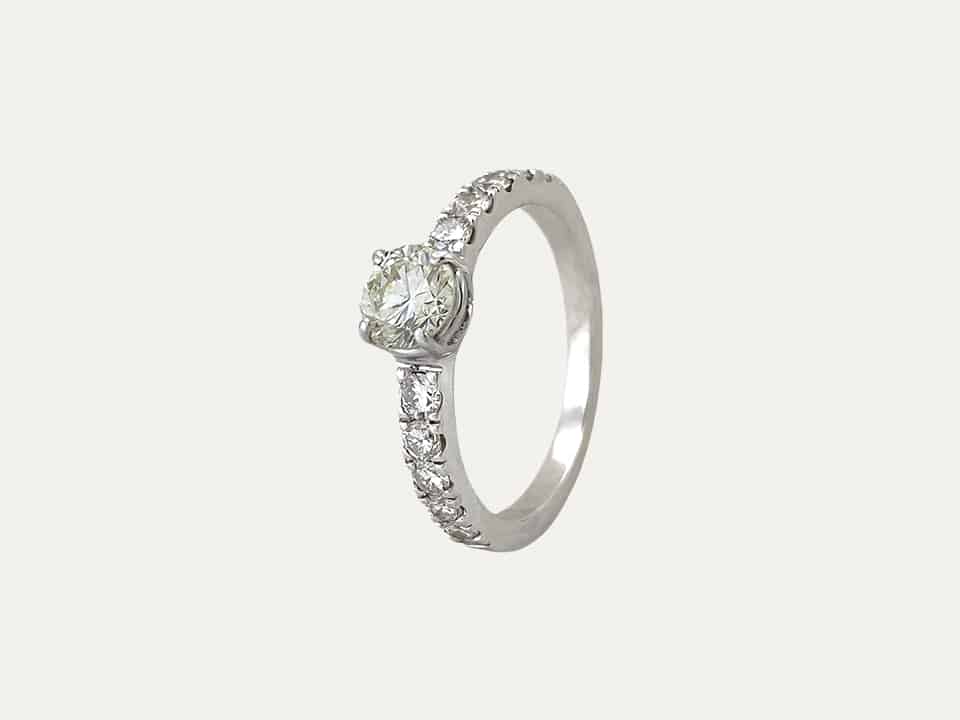 19,2 kt – 800 ‰ white gold ring with 1 brilliant cut diamond with 0.46 ct in the center and 10 brilliant cut diamond with 0.20 ct in total.