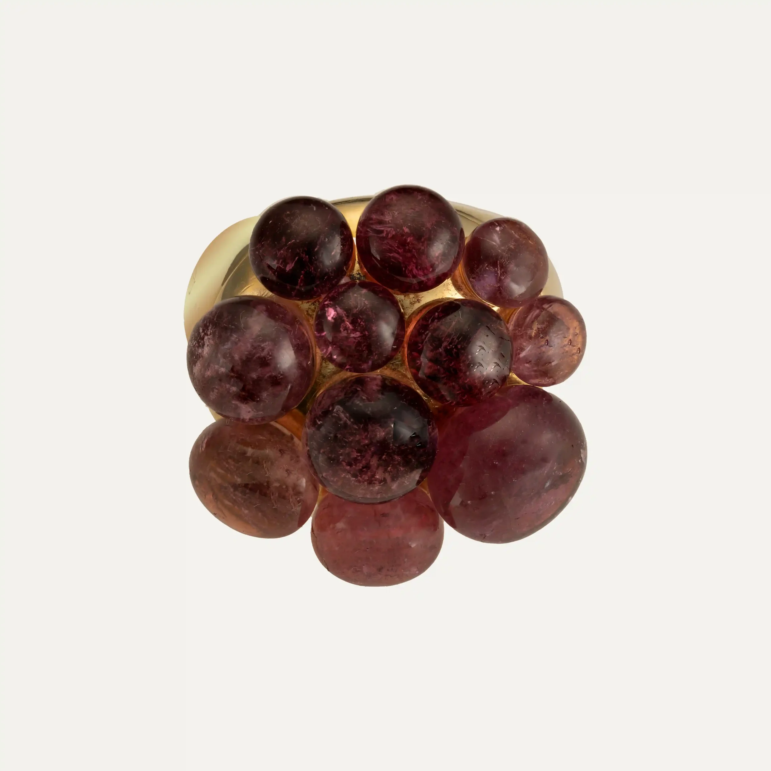 Pomellato ring in 18kt – 750‰ yellow gold, from the Mora collection. Dome-shaped ring featuring 11 round purple tourmaline cabochons. Comes with the original box.