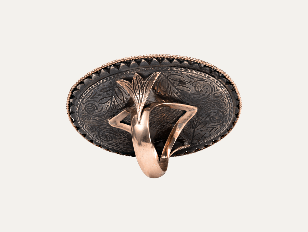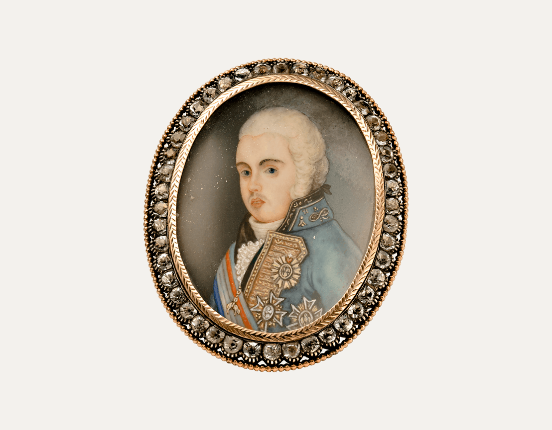 Gold and silver ring set with “Minas Novas” (quartz), with miniature of King João VI. Restorations and adaptations. Portuguese, without hallmark, under Decree-Law n.º 120/2017, art. 2, paragraph 2, item C and art. 3.