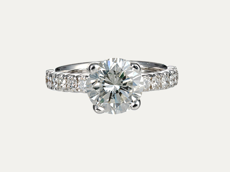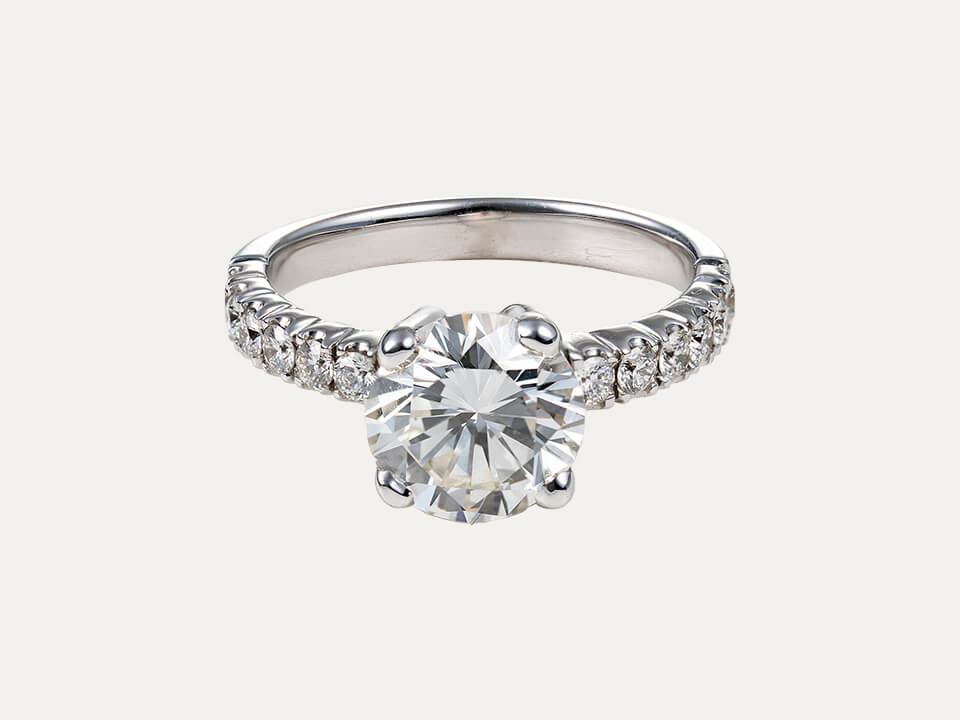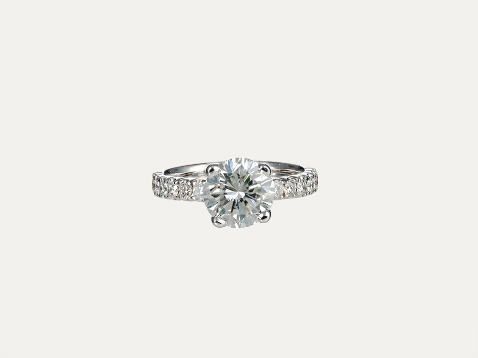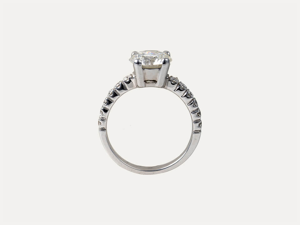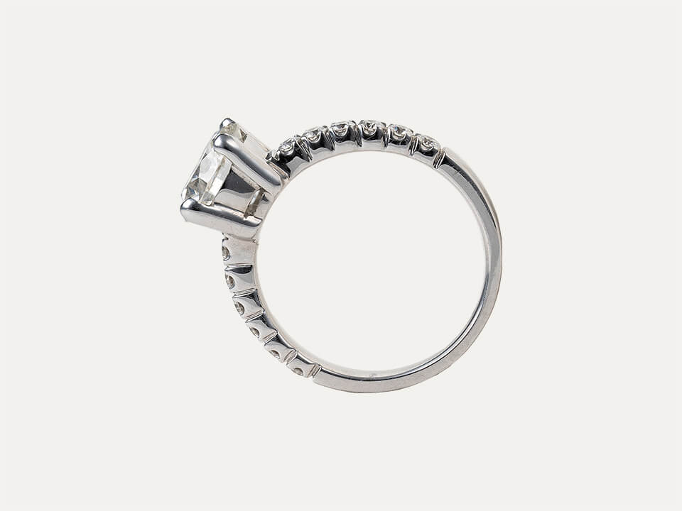 19.2kt – 800‰ white gold solitaire ring, set with one brilliant cut diamond in the center with 2,21ct, H, VVS2, with HRD Antwuerp certificate, and 12 brilliant-cut diamonds with 0.36ct total set on both sides.