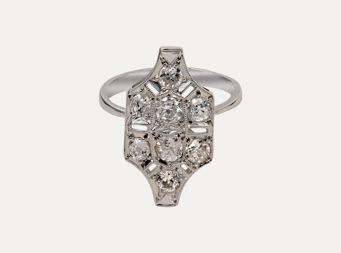19,2kt – 800‰ white gold ring, with 8 brilliant-cut diamonds, around 0.71ct in total.