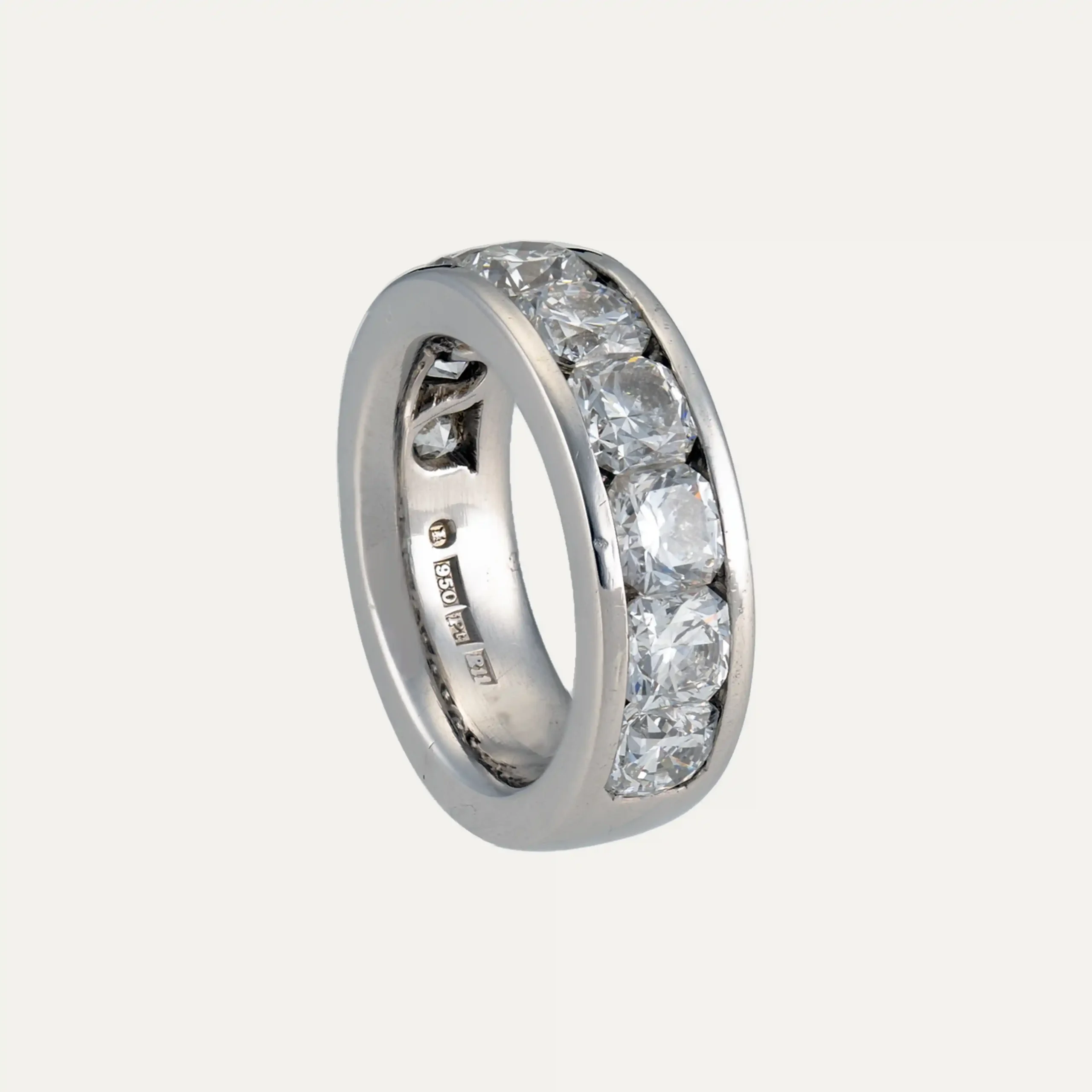 Anel em platina 950‰ com 9 diamantes, talhe brilhante, que totalizam cerca de 6.30 ct.