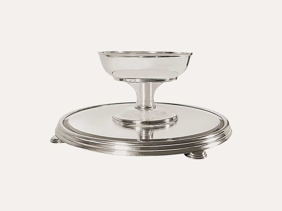 Centro de mesa Art Deco em prata 925 ‰ com plateau. Base com espelho biselado forrada a madeira. Português.