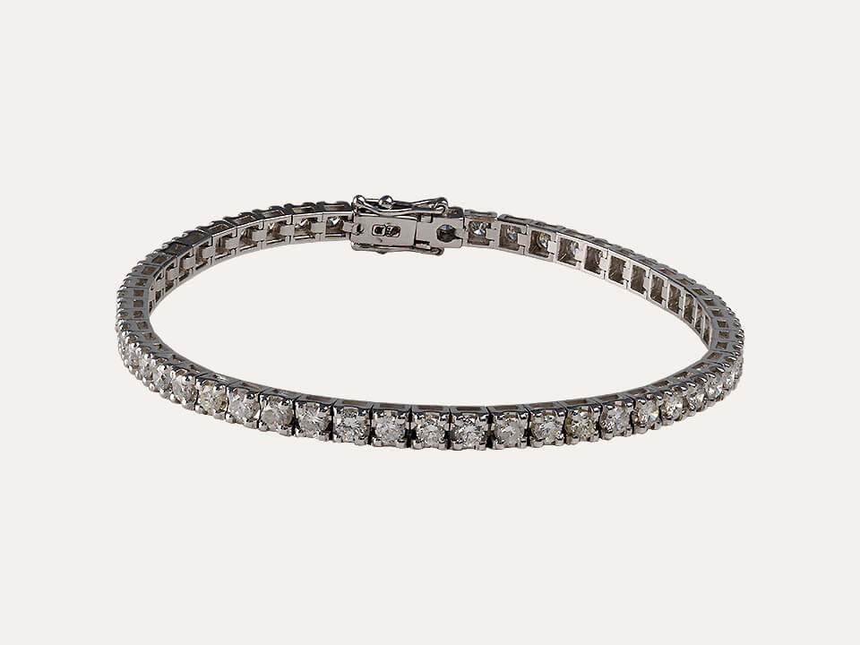 Pulseira riviera em ouro de 18kt – 750‰ com 53 diamantes, em talhe brilhante, com cerca de 3.7ct no total. Comprimento da pulseira 17.5cm. Com fecho de segurança.
