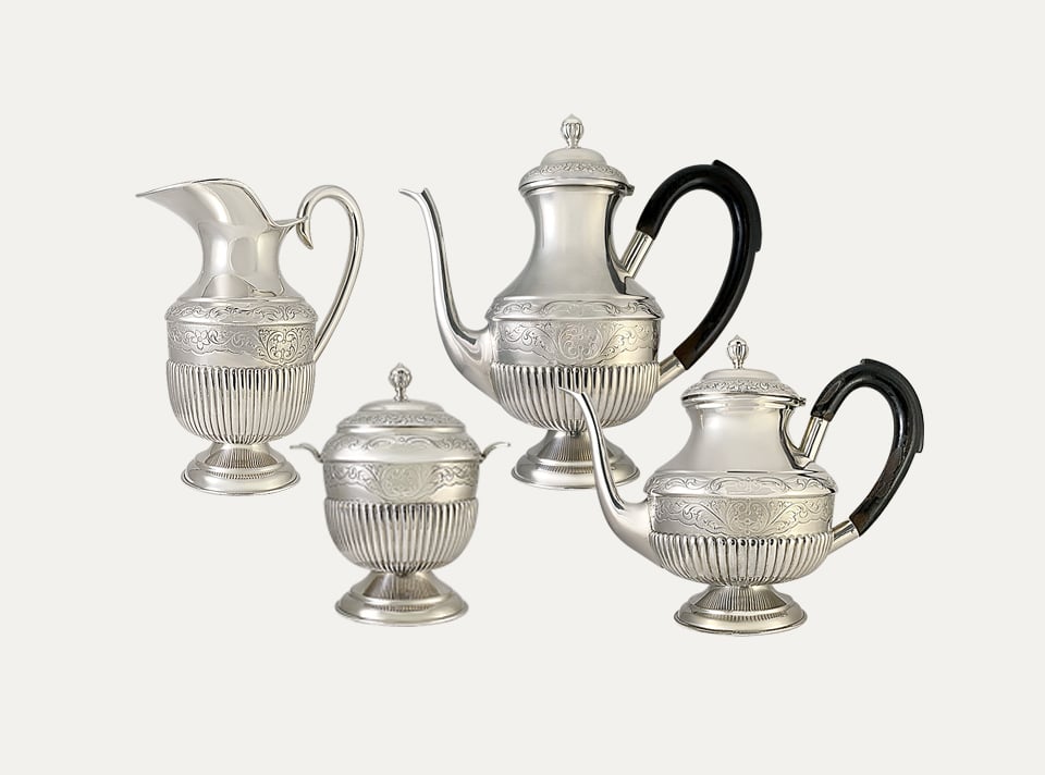 Serviço de chá e café, em prata, composto por 4 peças